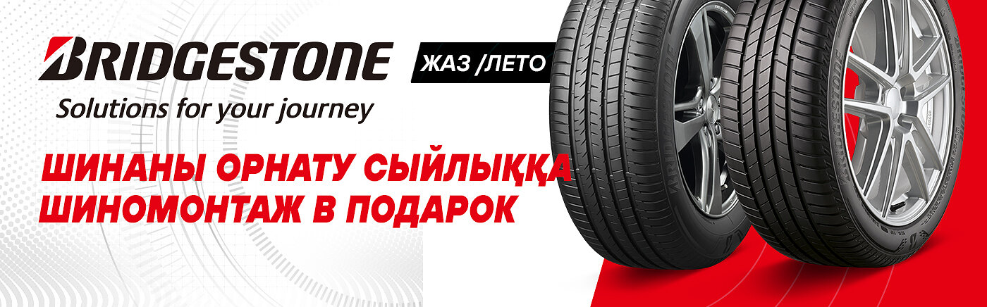 Құрметті сатып алушылар, біз сізге Bridgestone брендінің жазғы шиналарын біздің дүкендер желісінен сатып алу кезінде тегін шиналарды орнату науқанының басталғаны туралы қуана хабарлаймыз.